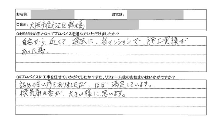 T様は「マンション居住の為、工事の際に、他の居住者からのクレーム等、問題が発生しないか…」などお悩みでした。プロバイスを選んで頂いた理由として、「自宅から近くて、過去に、当マンションで施工実績があった […]