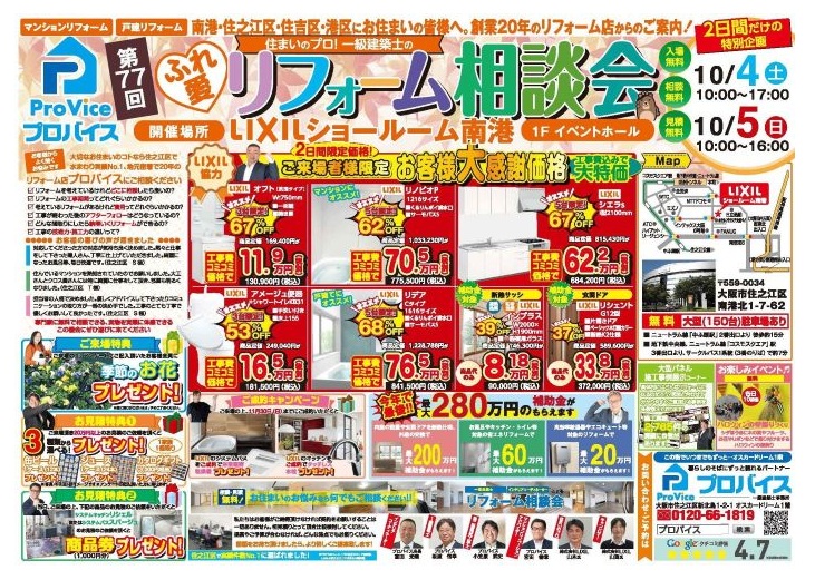 来たる令和7年10月4日・10月5日の土日の2日間、LIXILショールーム南港にて、ふれ愛イベントを開催します!リフォームをお考えの皆さま、是非この機会にご参加ください!