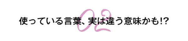 何気なく使っている言葉でも、思っている意味と違うことがあります。たとえば、「うがった見方」は、「疑うような見方」や「詮索するような見方」と思いきや、実は「物事の本質をとらえた見方」です。逆とも言える意味ですね。ほかに「邪推」という言葉があります。これは「思い違い」や「深く疑う」のような意味で使うことがあるかもしれませんが、ちょっと違っていて「他人の言動などを悪い方向に推測する」「自分に悪意を持っていると疑う」ということで、ネガティブな意味が含まれています。「悪運が強い」という言葉、ドラマのセリフで耳にしたことありますね。これは不運な出来事にあっても被害を受けなかったから運が強い、という意味ではなく「悪行を働いてもその報いを受けずに栄えること」だそうです。「いそいそ」という言葉は、「せわしない様子」かと思いきや「嬉しいことがあり、心を弾ませて動いている様子」なのだそうです。あなたはいくつ知っていましたか?