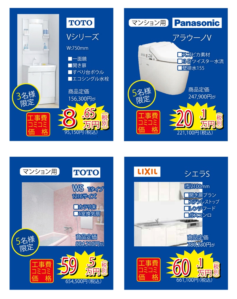 キッチン・ユニットバス・トイレ・洗面化粧台 などの
