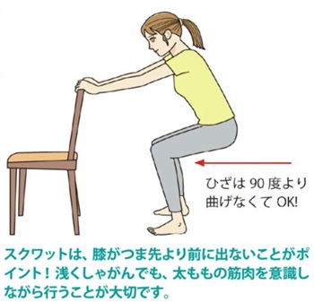 足腰を鍛えるのに効果的なスクワット。椅子を使えばハードルが下がります。